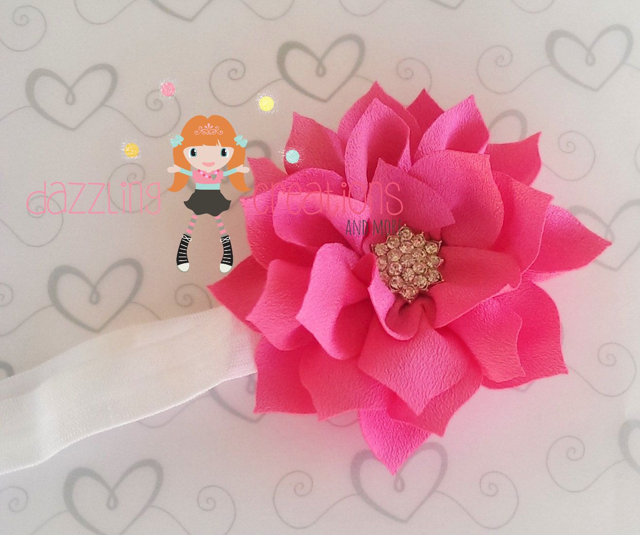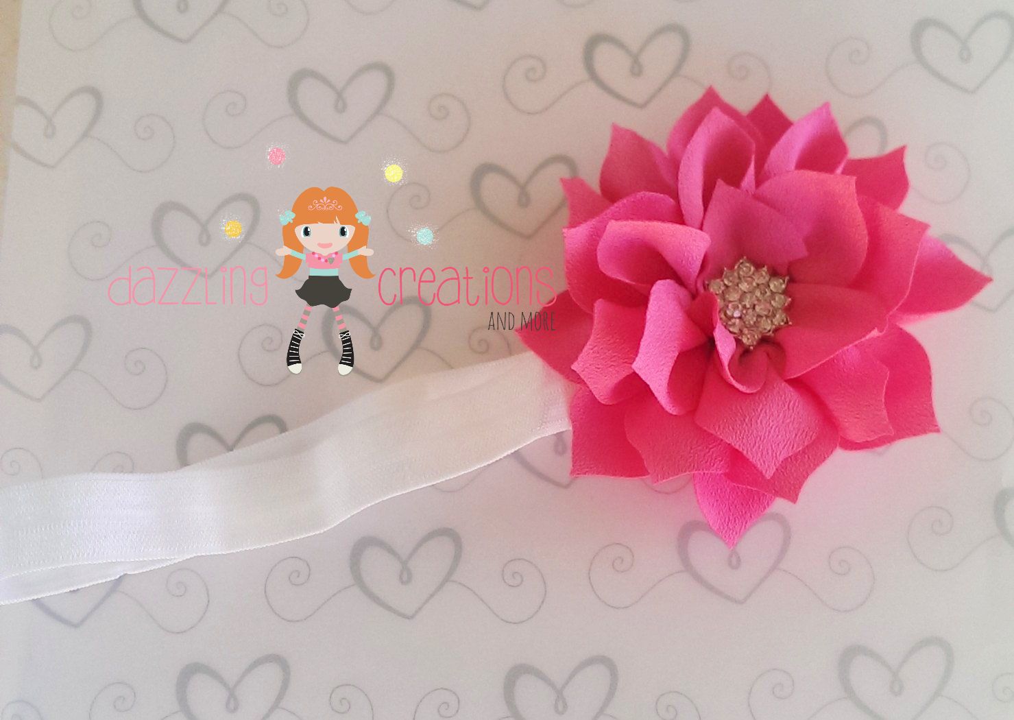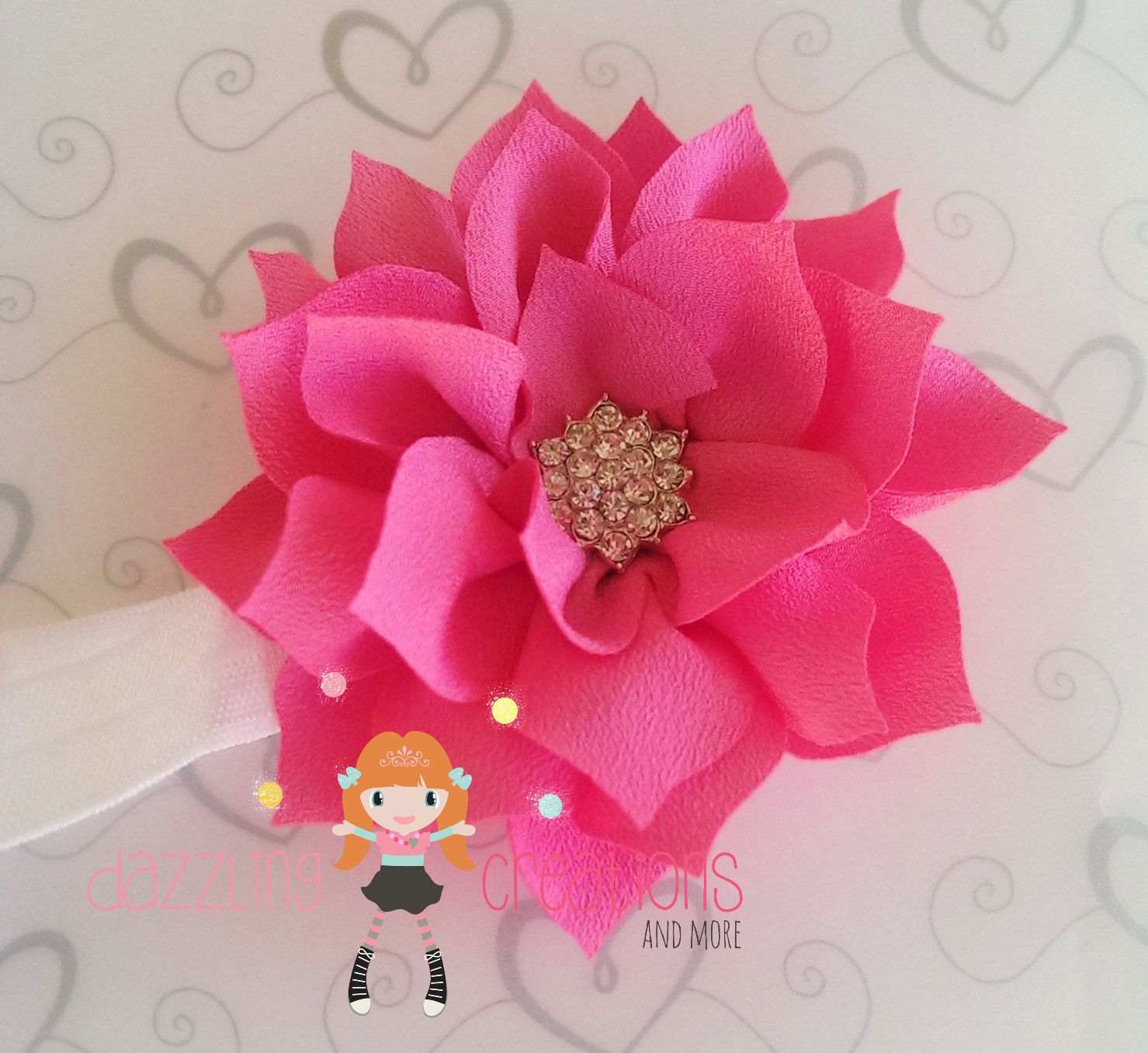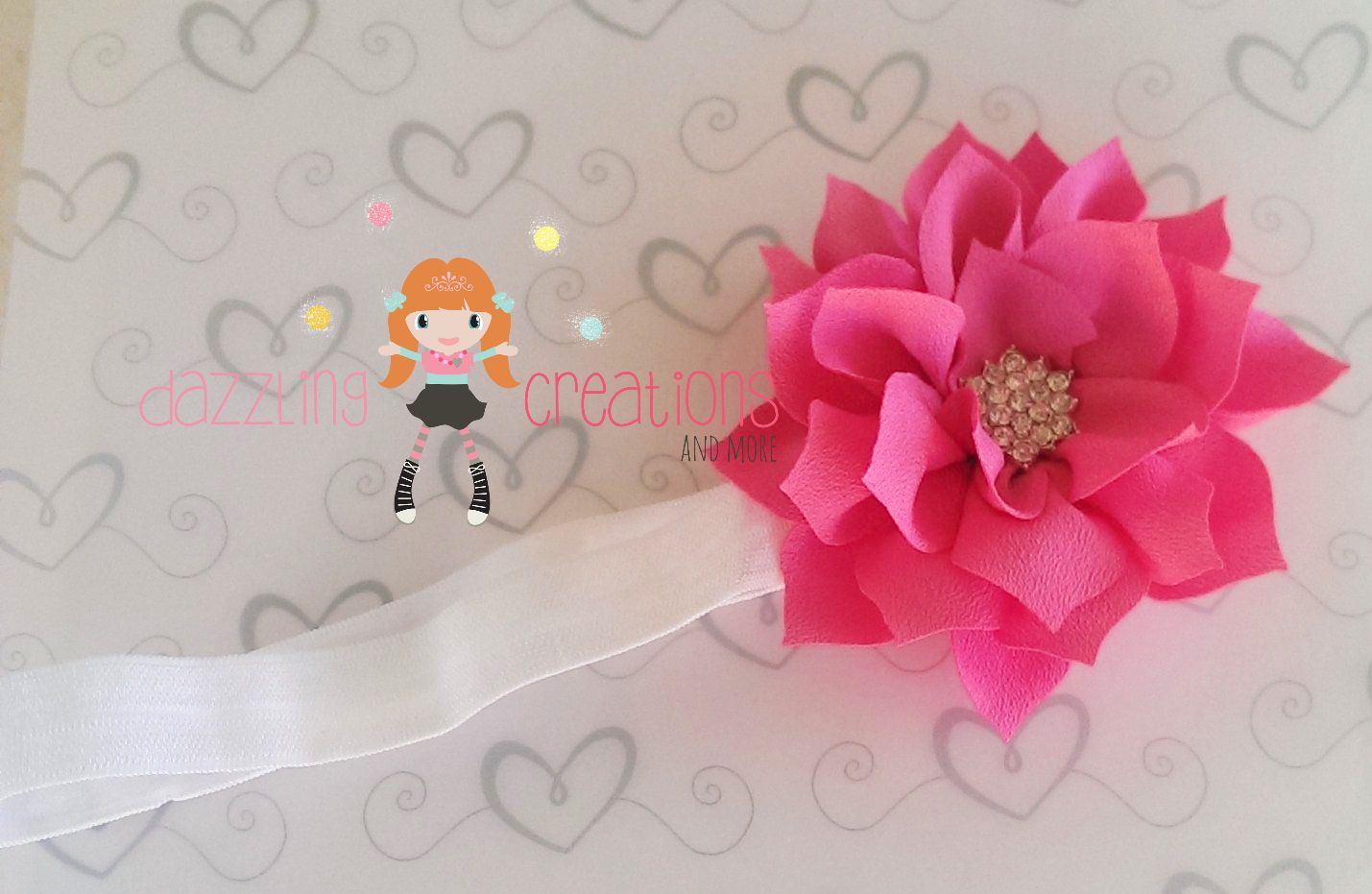 Bright Pink Flower Rhinestone Center Headband/Perfect Photo Prop/Newborns/Kids