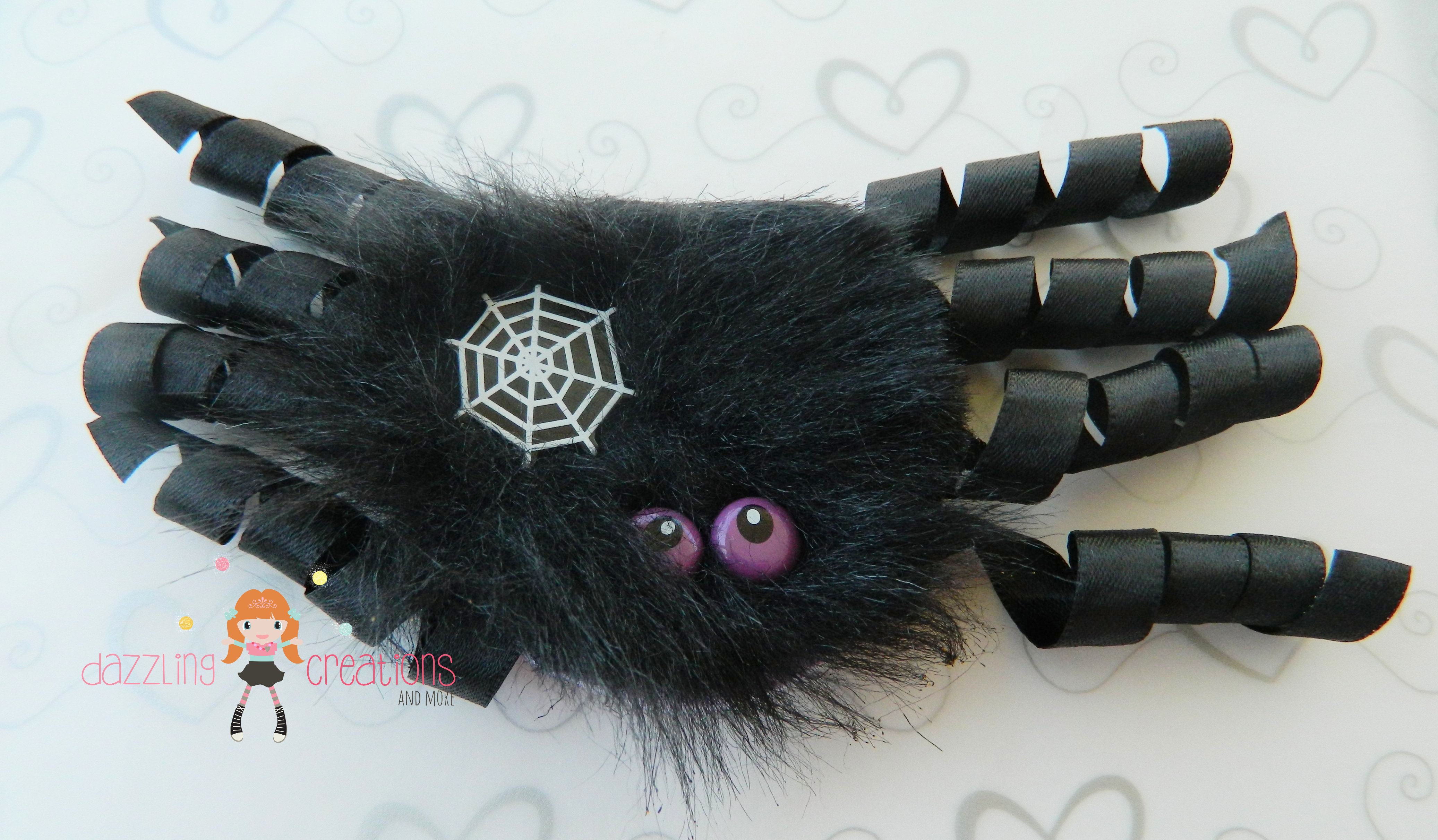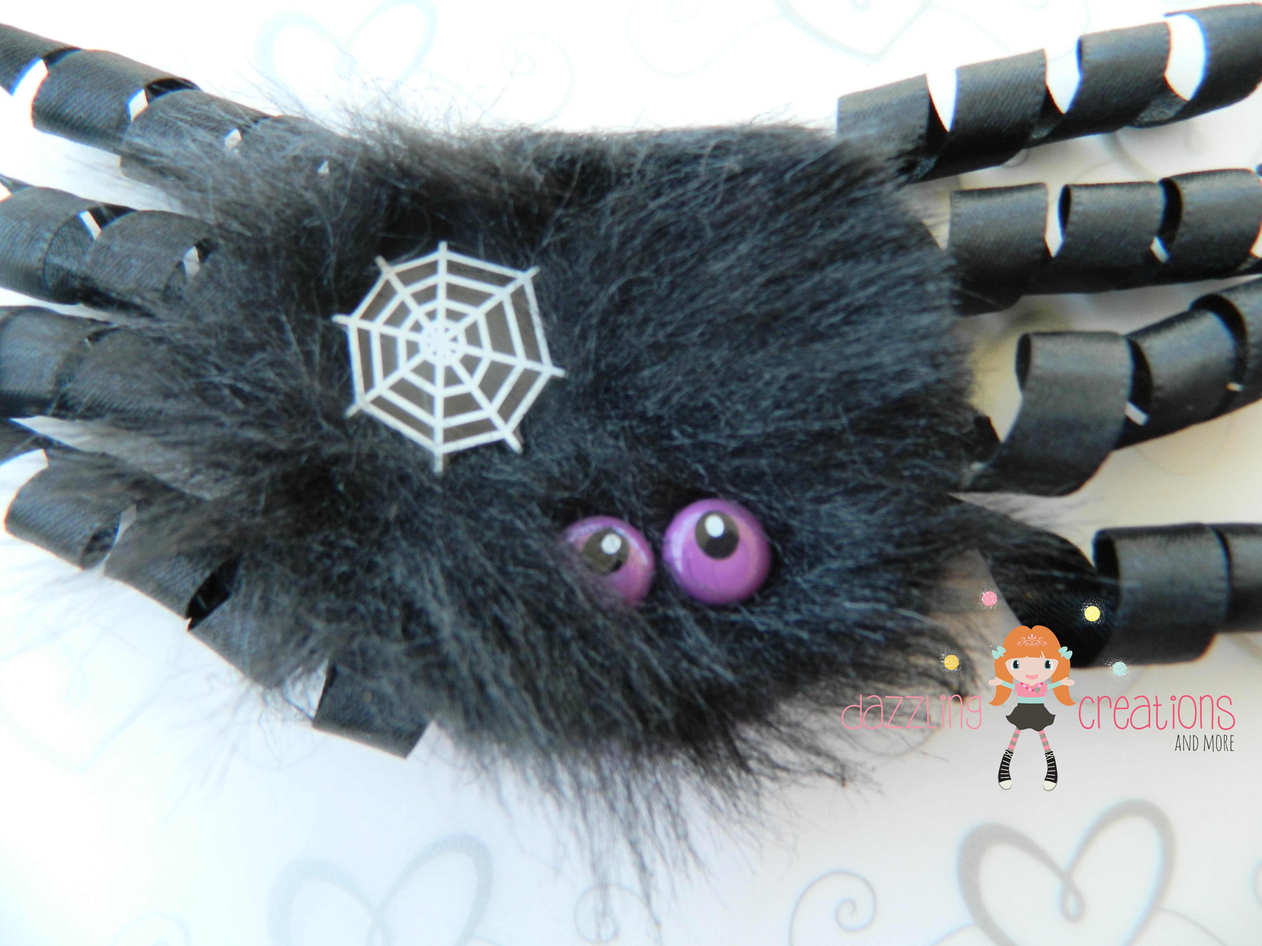 This listing is for one adorable Halloween hair clip. Choose between an orange bow spider clip or purple bow clip.