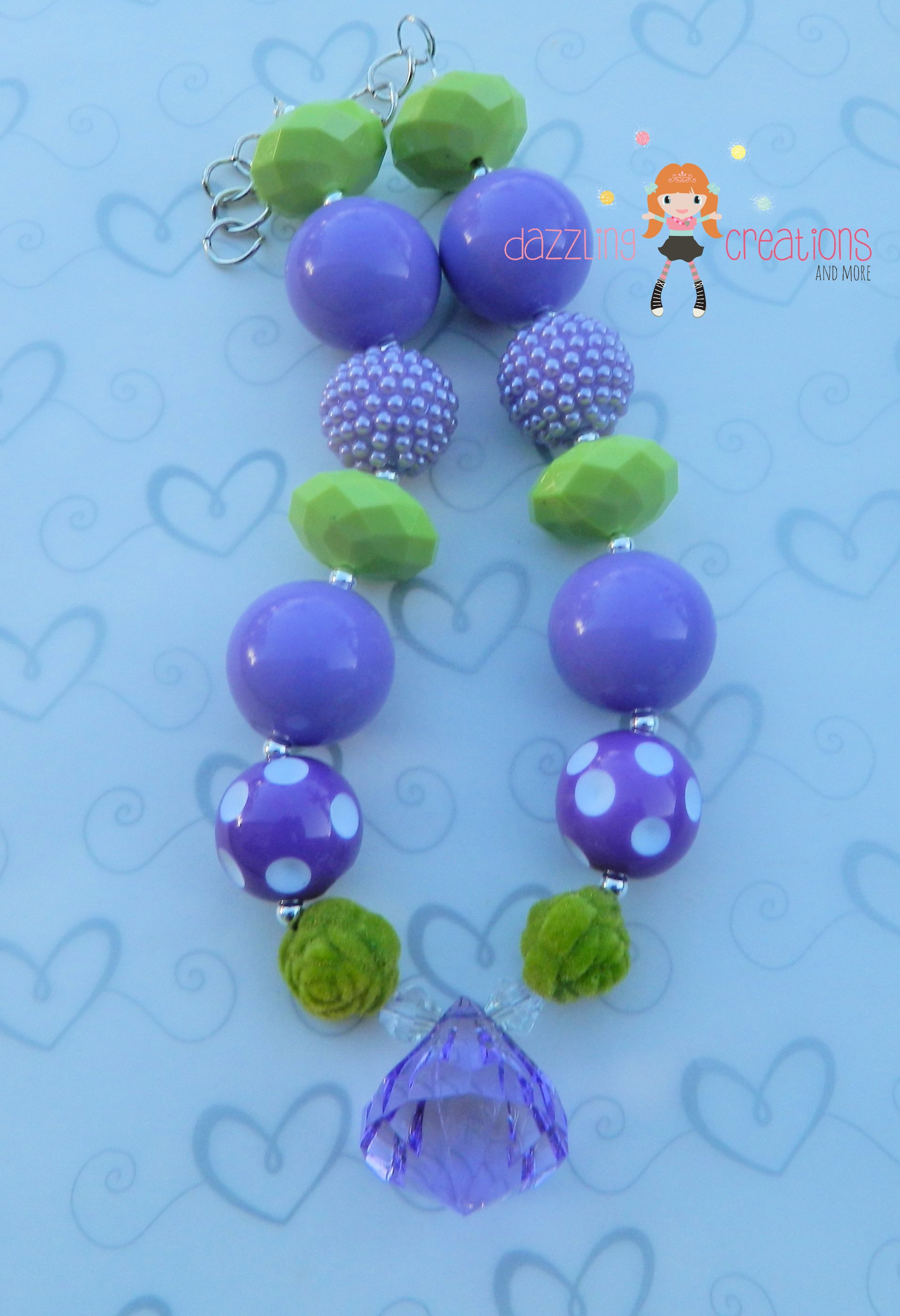 Tinker Bell Inspired/Chunky Necklace/Bubblegum Beads/Girls Jewelry/Hair Clip/Halloween