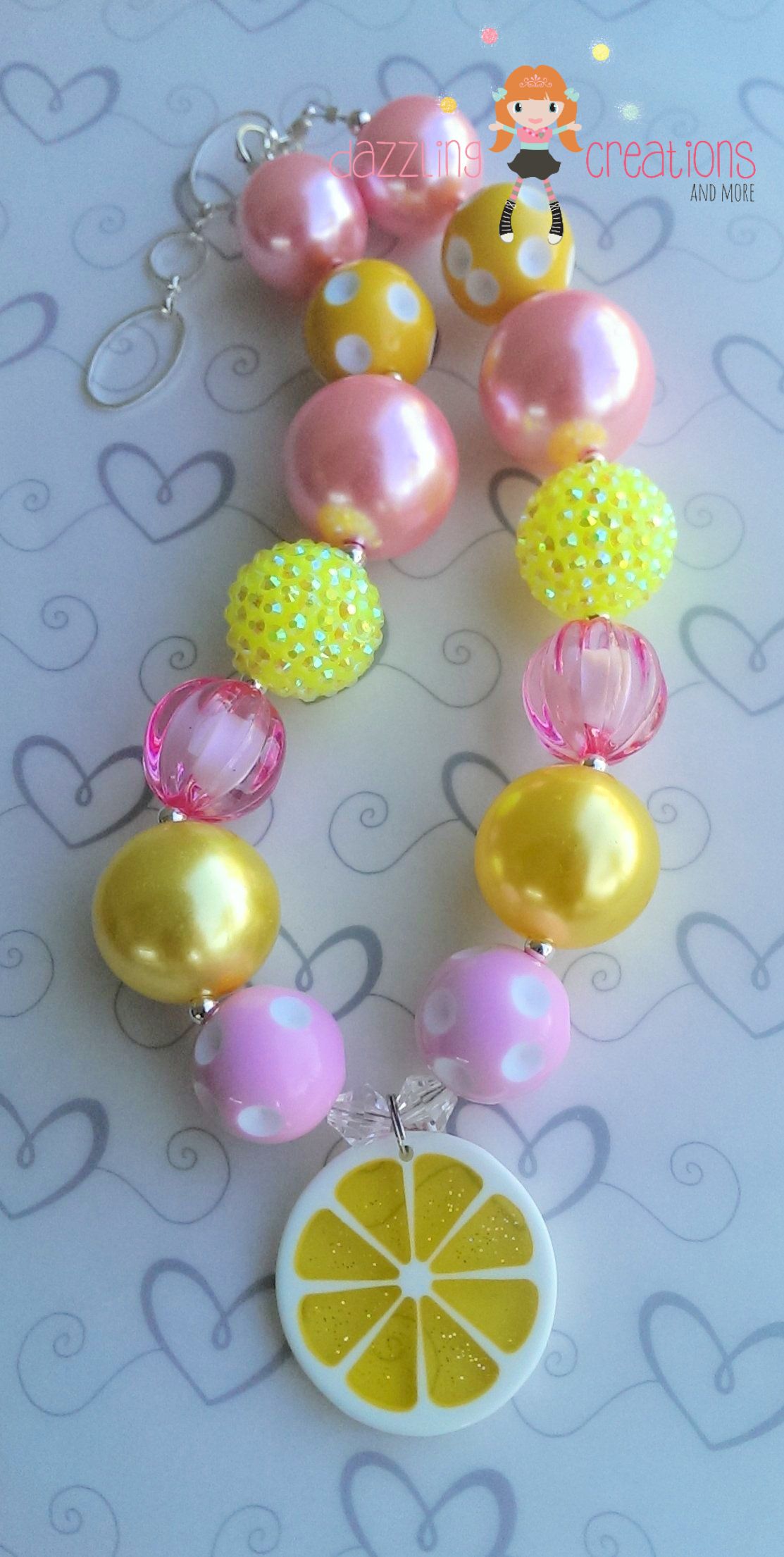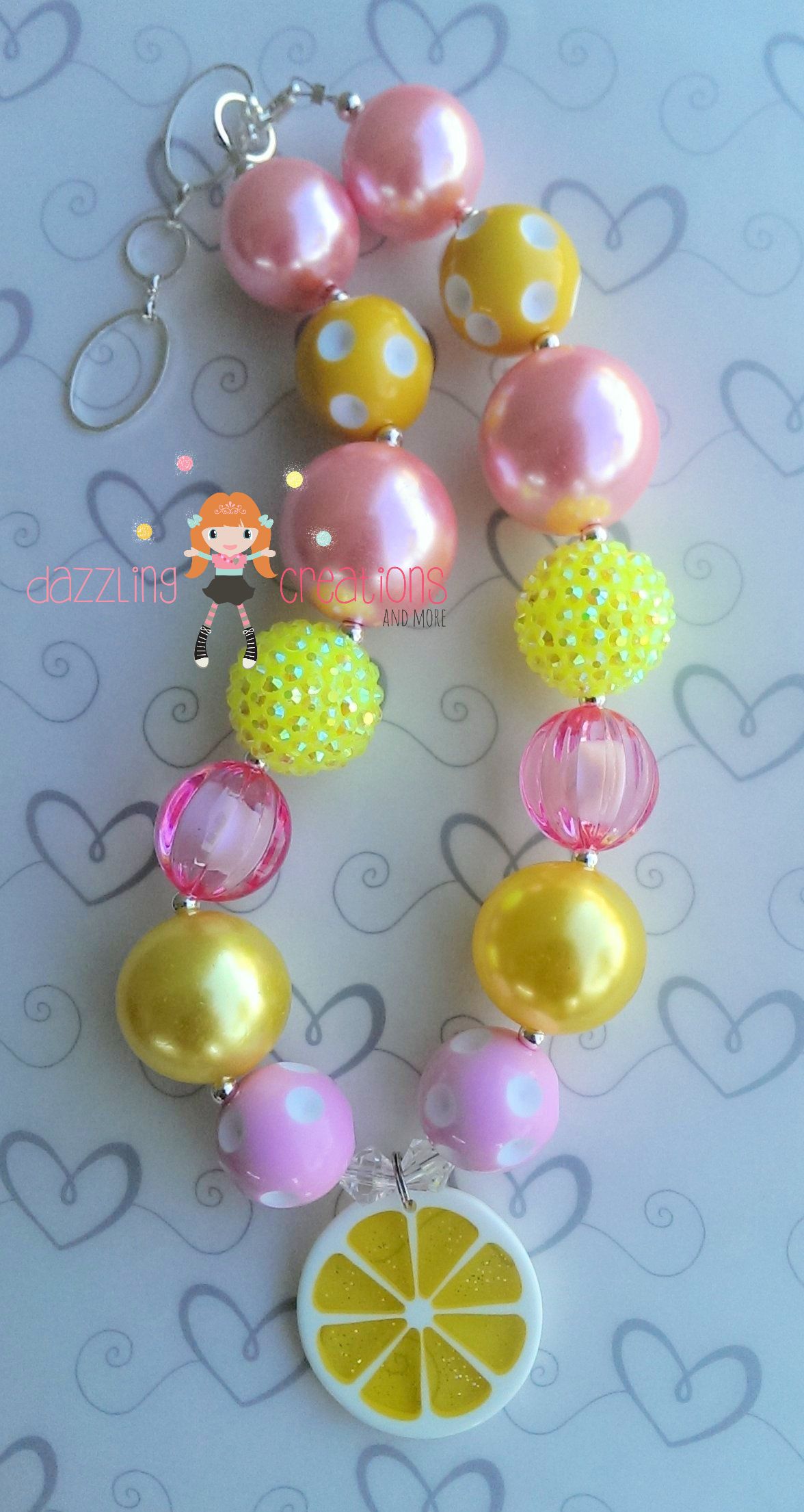 Pink Lemonade Pendant Chunky Necklace Hair Bow Sets Perfect Photo Props/Bubblegum Beads/Girls Jewelry