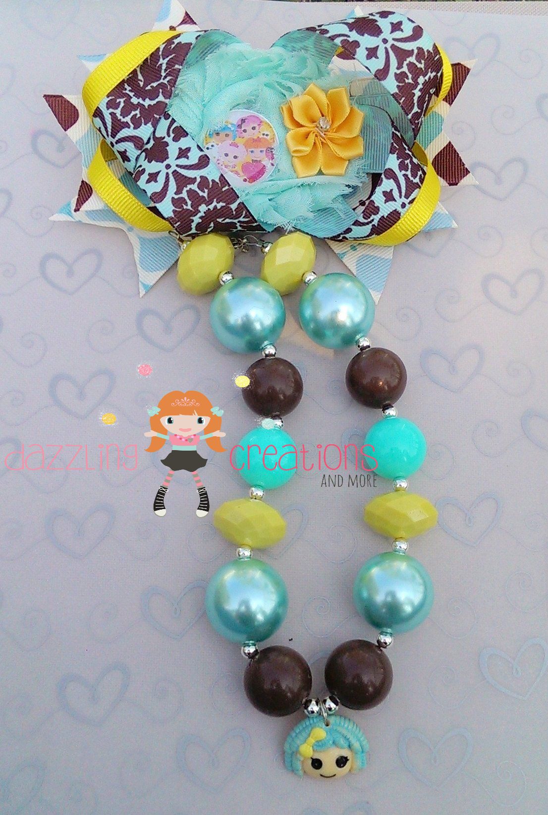 Teal Lalaloopsy Chunky Necklace Hair Bow Set/Bubblegum Beads/Girls Jewelry