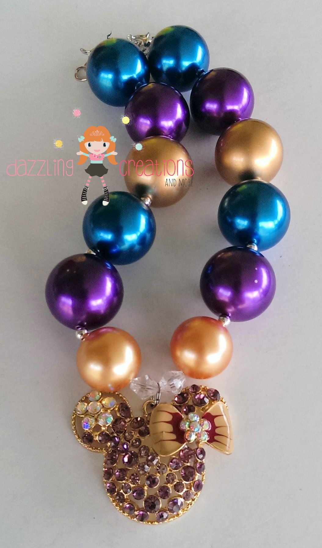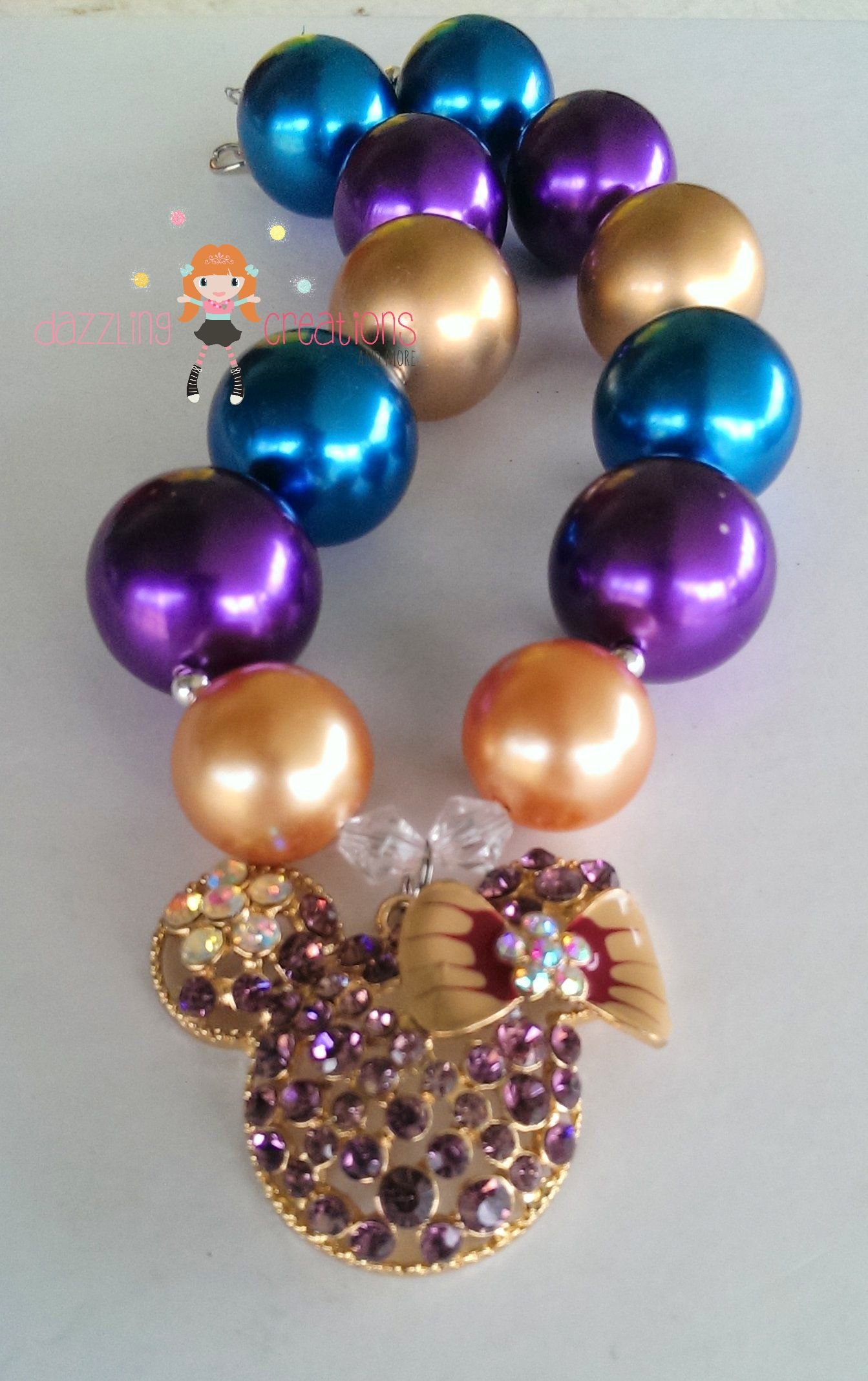 Purple Gold Minnie Inspired Chunky Necklace/Bubblegum Beads/Girls Jewelry