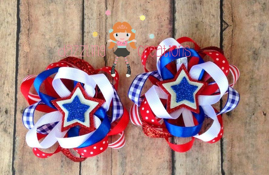 '2 Double Hair Bows'!! This listing is for a matching pair of Patriotic Hair Bows.