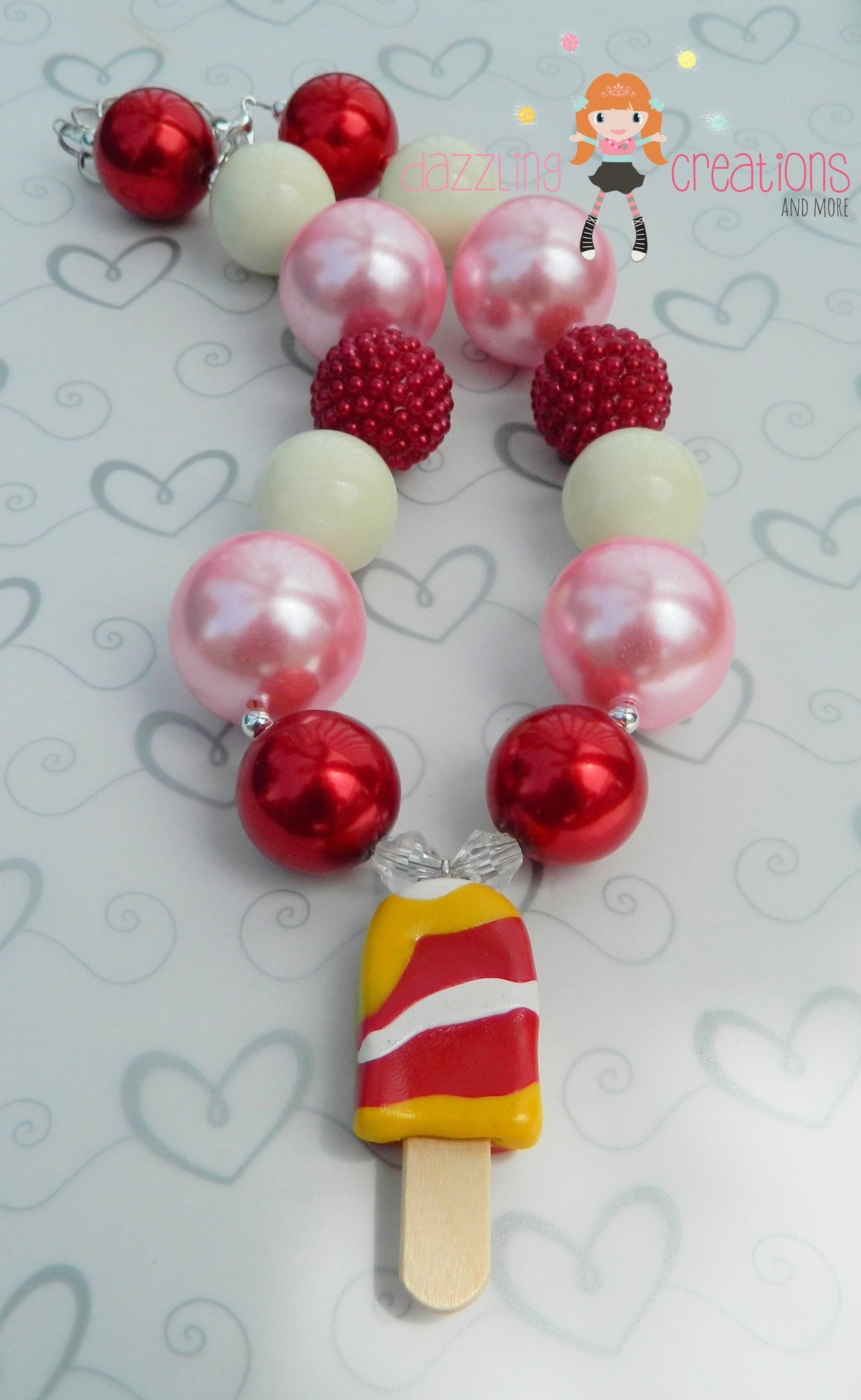 Strawberry Banana Ice Cream Pendant Chunky Necklace/Hair Bow Set/Perfect Photo Props/Bubblegum Beads/Girls Jewelry