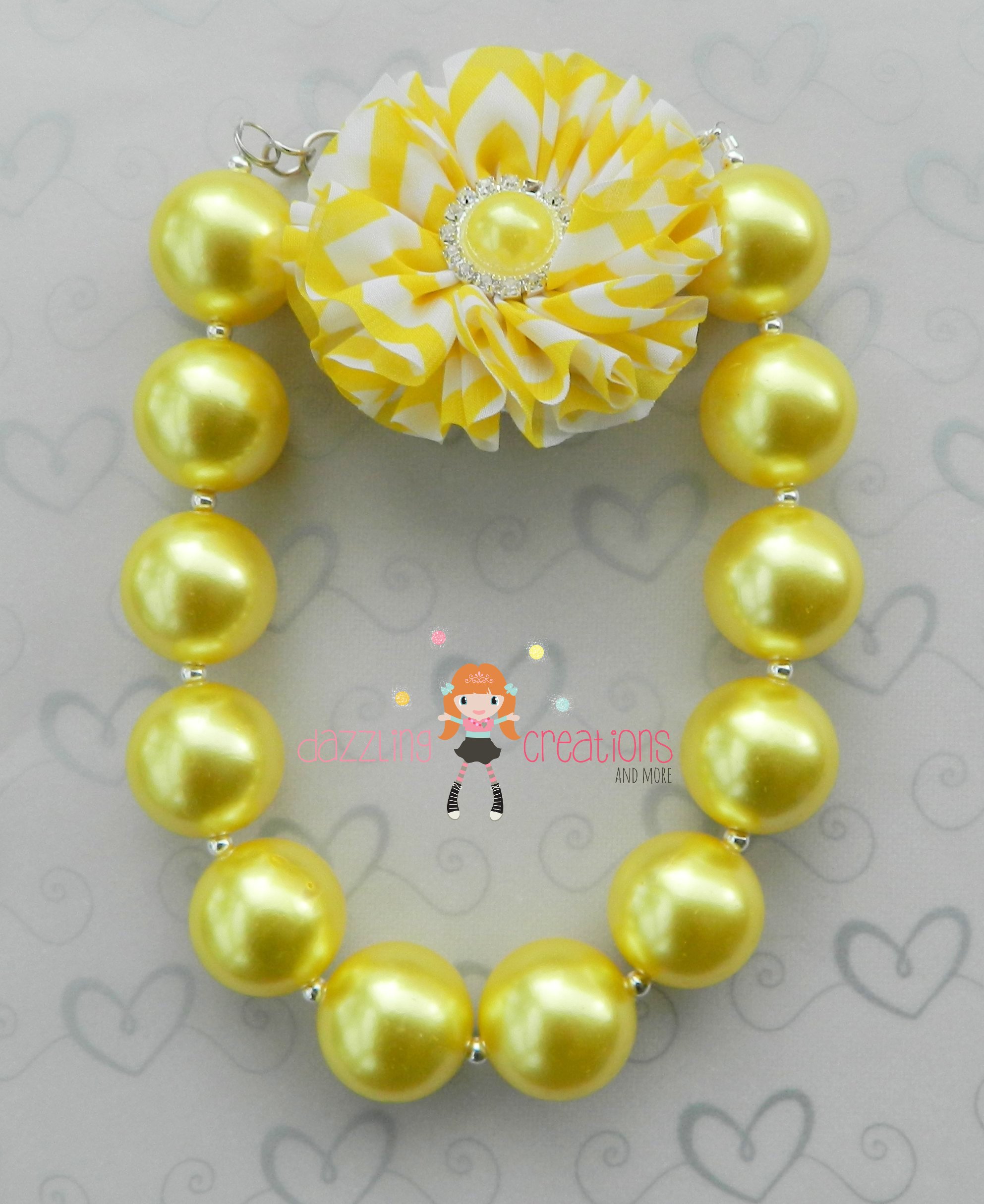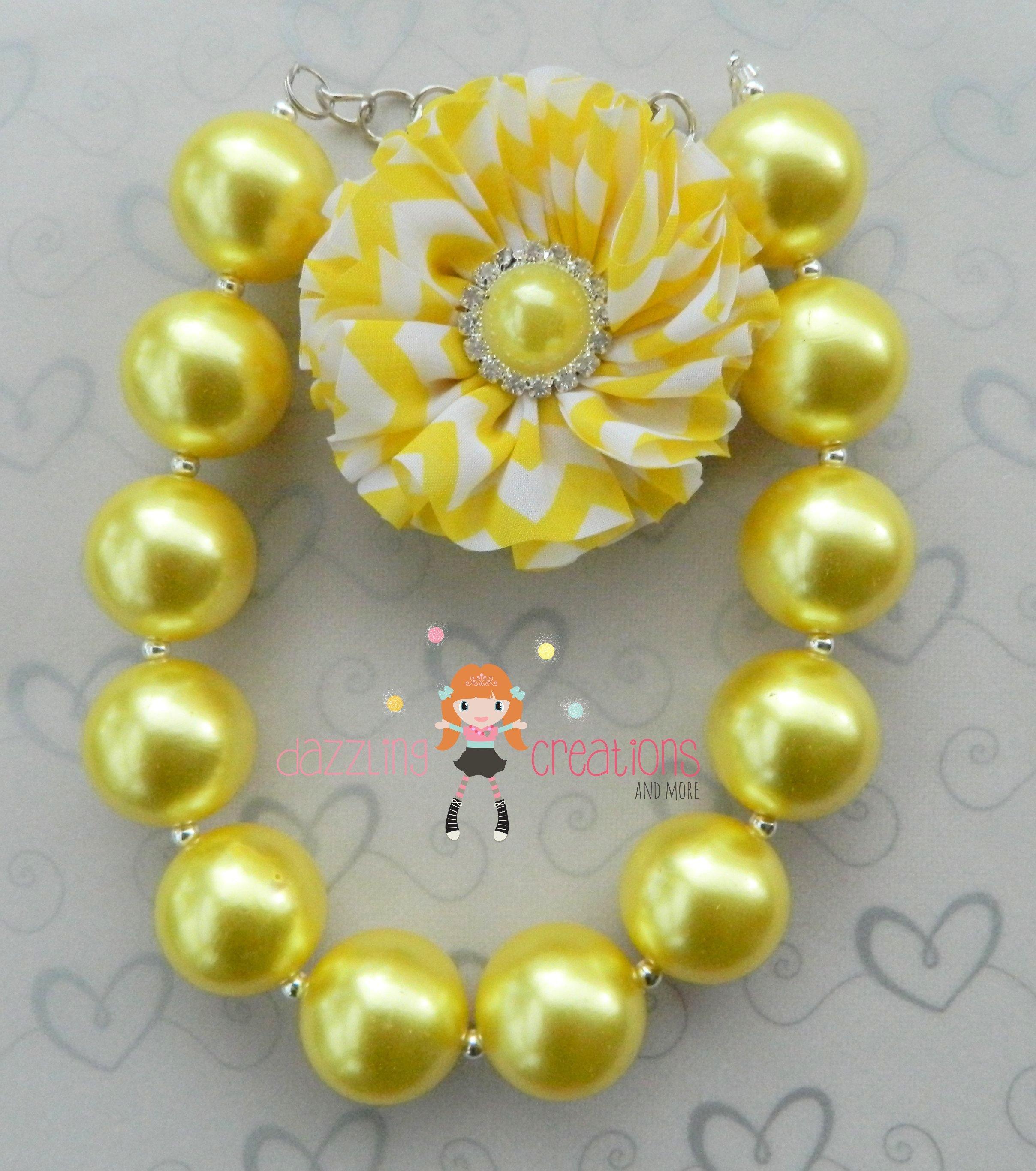 This listing is for one adorable chunky beaded necklace show with headband. Chunky Necklaces are the current trend for all ages!! You are guaranteed to love the bling on this piece. What girl doesn't like some sparkle? These READY TO SHIP chunky necklaces are ideal for 6 months - 10 years and makes a gorgeous and memorable gift. This is a great accessory for any outfit, perfect as a photo prop or everyday use! The Yellow Flower Rhinestone Center Headband is perfect for newborns and older.