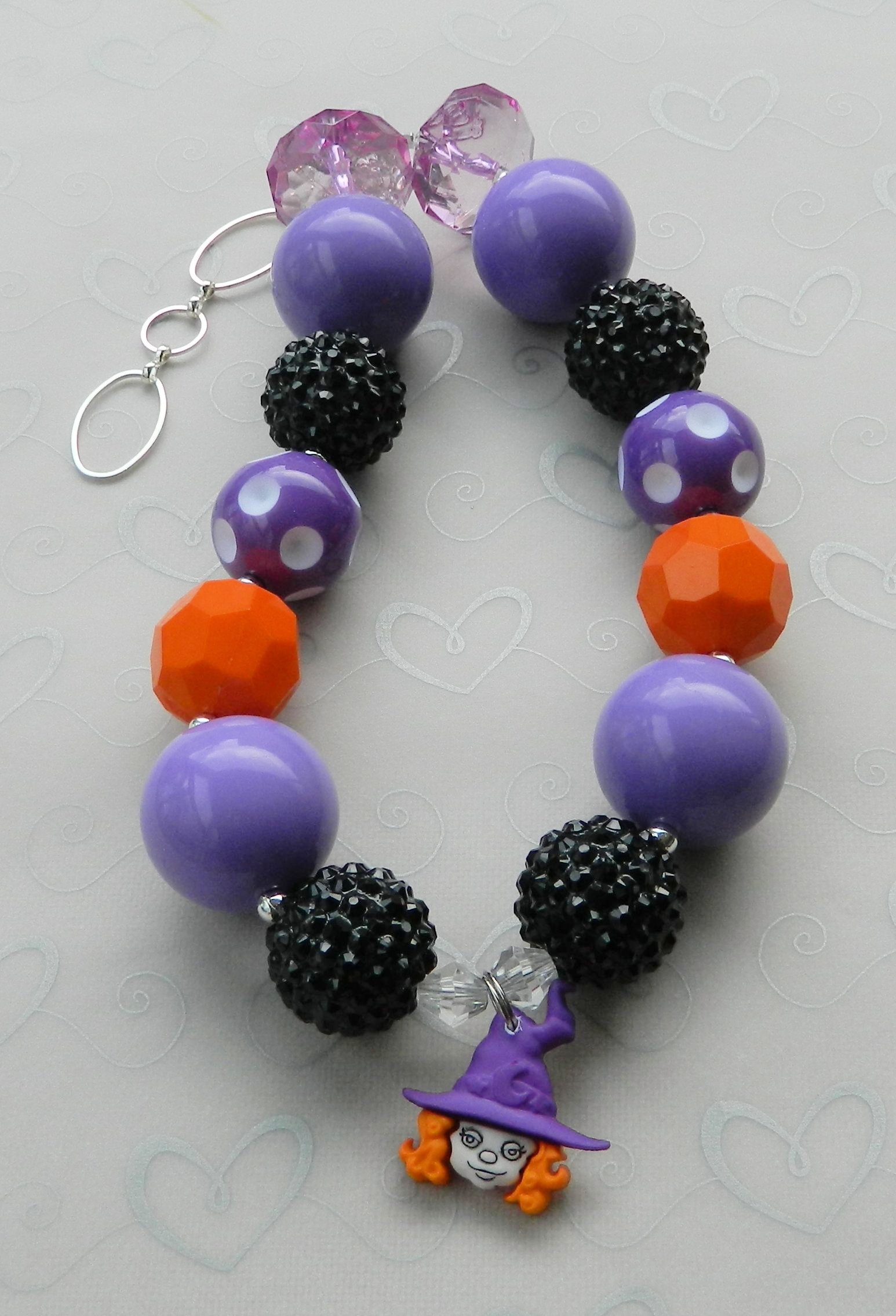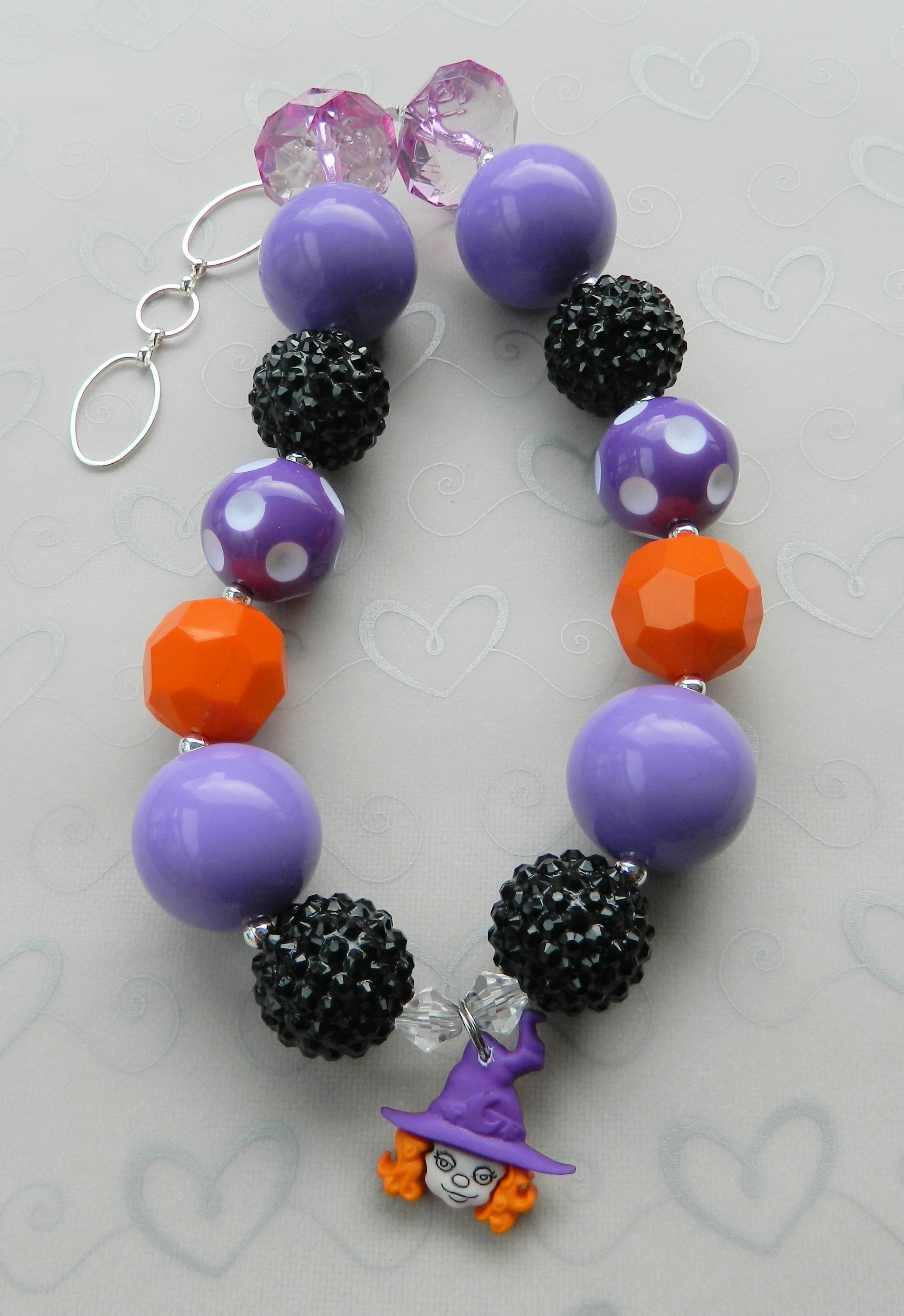 Witch Pendant Halloween Chunky Necklace/Perfect Photo Props/Costumes/Girls Accessories